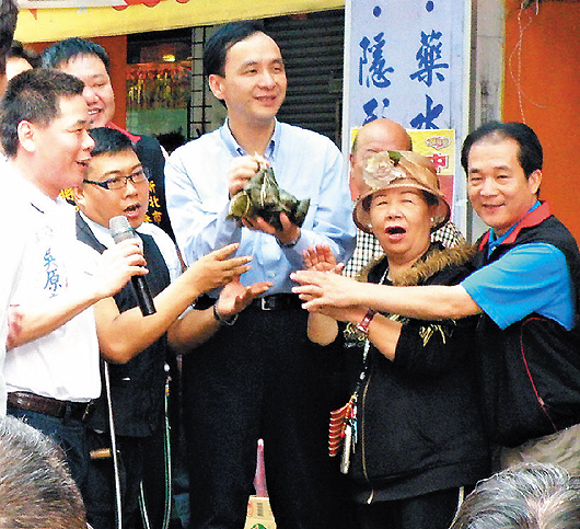 朱立倫參加殘障人士團體端午包粽活動,受到熱烈歡迎。(圖:臺灣《聯合報》)