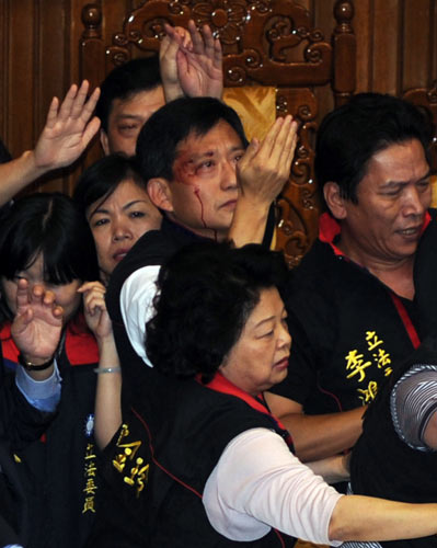 臺(tái)“立法院”臨時(shí)會(huì)8日審議ECFA(兩岸經(jīng)濟(jì)合作框架協(xié)議),由于民進(jìn)黨暴力阻撓表決,現(xiàn)場爆發(fā)肢體沖突,多名“立委”掛彩,混亂中通過將ECFA等案徑付二讀。