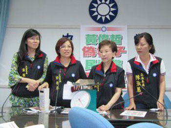 國民黨“立委”現(xiàn)場稱重計時器重量。 圖片來源:臺灣“中廣新聞”