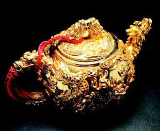 臺“監察院”公布財產,民代徐耀昌擁有1具金雕名師鄭應諧精雕的九龍金茶壺,當時價值60萬元新臺幣,現已翻了好幾倍。圖片來源:臺灣《聯合報》