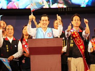 21日晚上在大東夜市舉行的造勢大會,吸引五萬名支持者到場相挺,國民黨主席馬英九也專程南下站臺。