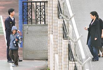 陳水扁的女兒陳幸妤(右一)昨天上午帶著兒子趙翊安(左前)前往臺北看守所,探視遭收押的陳水扁。圖片來源:臺灣聯合報