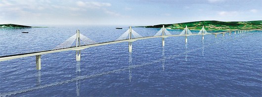 據(jù)臺灣《中國時報》報道,臺灣最長的跨海大橋“金門大橋”,9日由馬英九、“行政院長”吳敦義親自動土開工,預(yù)定2016年6月完工通車。馬英九期許這座造價逾75億元的大橋,在“七分觀光,三分交通”的興建概念下,成為吸引兩岸觀光客的海上新地標(biāo)。