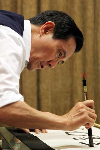 在官邸方面公布的影片中,馬英九認(rèn)真執(zhí)筆練習(xí),馬英九在書(shū)法老師劉維椿的指導(dǎo)下,用毛筆替兔年賀歲春聯(lián)寫(xiě)上賀詞,誠(chéng)意十足。
