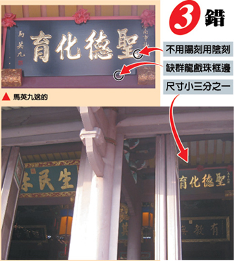 馬英九贈送的匾有三處錯誤。 來源:臺灣《聯合報》