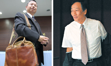 楊志良與郭臺銘面交公文包。 來源:臺灣《聯合晚報》