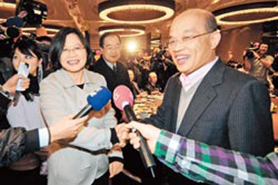 報道指出,民進黨內原本浮現一股由“政治聲勢”最強的蘇貞昌和蔡英文兩人搭檔的聲音,但近日的發展顯示,難度頗高。以蘇、蔡兩人的強勢性格,加上“五都”選舉布局不同立場所留下的歧見與心結,恐怕很難樂觀期待蘇蔡能夠“合體”。