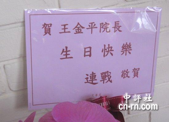據中評社報道,“立法院長”王金平17日70大壽,“立法院院長”室外排滿祝賀花籃,包括國民黨榮譽主席連戰、“行政院長”吳敦義、海基會董事長江丙坤、“陸委會主委”賴幸媛、臺北市長郝龍斌、嘉義市長黃敏惠等政壇人士都送花祝壽。