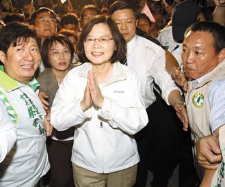 蔡英文昨天在高雄舉行造勢晚會,希望爭取支持,代表民進黨參選2012。(圖片來源:臺灣《聯合報》)