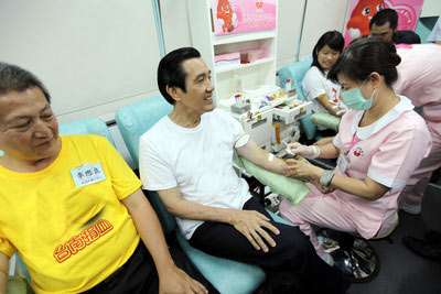 馬英九說,臺灣人很愛捐血,有次他到臺大醫院捐血,人滿為患,原來當時臺大醫院血荒,呼吁大家出來捐血,結果一下子來了數百人,連他這種“捐血老鳥”都排不上隊伍。(中國臺灣網 馮存健)