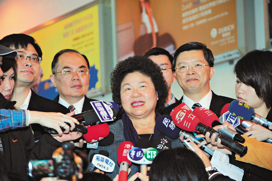 高雄市長陳菊24日返回高雄,對于代理民進黨主席之事表示,將會聽黨內多元意見。(圖片來源:臺灣《聯合報》)