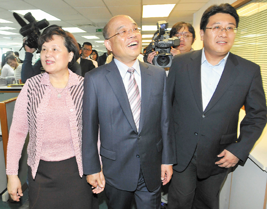 蘇貞昌(中)上午到民進黨黨部完成黨主席選舉登記。來源:臺灣《聯合晚報》