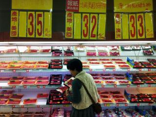 臺灣“立法院”臨時會25日“三讀”修改通過食品衛生管理規定部分條文,未來符合安全容許標準的萊克多巴胺牛肉將可進口。圖為消費者購買美國牛肉情形。圖片來自臺灣“中央社”