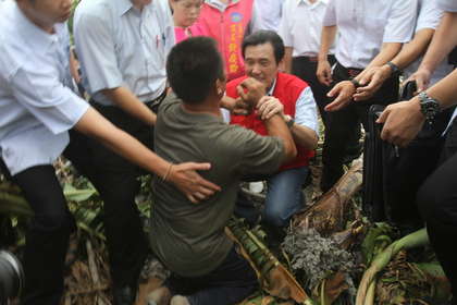 中國臺灣網8月4日消息 據臺灣媒體報道,蘇拉臺風肆虐宜花東,馬英九今天上午赴臺東視察農業災害,1名蕉農當場下跪盼,“救救農民”。
