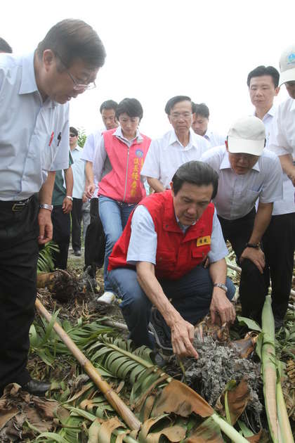 馬英九今赴臺東視察香蕉農損。(圖片來自臺媒)