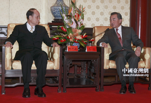 中國臺灣網10月17日北京消息 中共中央臺辦、國務院臺辦主任王毅今天中午在北京釣魚臺賓館會見了海基會董事長林中森及其率領的海基會文化經貿參訪團。 (中國臺灣網記者 田云鵬)