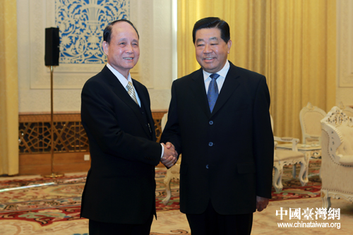 中共中央政治局常委、全國政協主席賈慶林17日下午在人民大會堂會見了海基會新任董事長林中森。(中國臺灣網 陳佳慧 攝)
