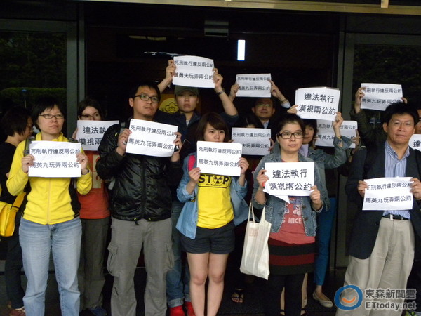 4月19日,臺灣“廢死聯盟”等民間團體前往臺當局“法務部”抗議再次執行死刑。(圖片來源:臺灣“東森新聞網”)