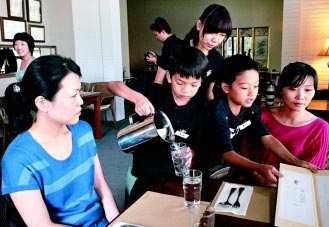 中國臺灣網7月25日消息 臺北縣樹林有家外觀典雅的西餐廳,但一推開門讓人嚇一跳,服務生與廚師平均年齡只有10歲!這群小小服務生一致穿著黑色制服與圍裙,腰間折掛著整齊的長布巾,小女孩一本正經領位,“這邊請”,小男孩遞上菜單,“請問要點什么”?煞有介事拿出紙筆待命。