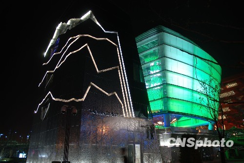4月13日,臺北舉行“2010年上海世博會臺灣館啟航記者會”,館內(nèi)設(shè)計及展演內(nèi)容首度曝光。圖為臺灣館刻有的名山陵線,在晚間十分清晰。(臺北世貿(mào)中心供圖) 中新社發(fā) 董會峰 攝