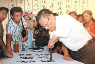 大陸無臂書法家揮毫“中華久遠”贈馬英九