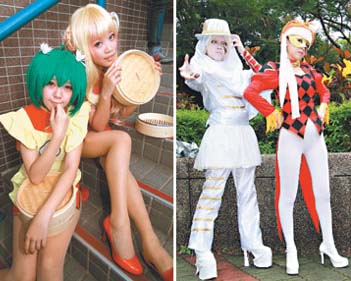 25日在臺大小巨蛋舉行的開拓動漫祭,場外向來是cosplay重地。過去多年來,女扮男角雖普遍,男扮女角卻很罕見,然而隨著近年日本動漫流行的“偽娘風”,越來越多男生勇扮女角。