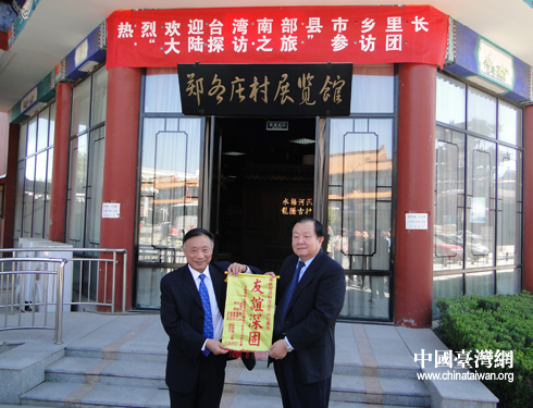 圖為鄭各莊村領導與參訪團成員互贈禮品。(中國臺灣網 王賽賽 攝)