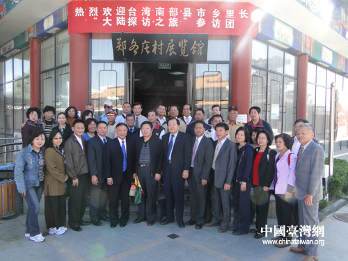 圖為參訪團在鄭各莊村展覽館前合影。(中國臺灣網 王賽賽 攝)