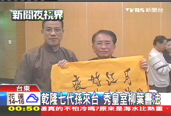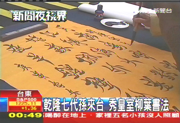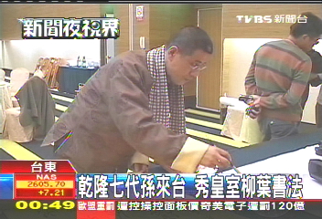 中國(guó)臺(tái)灣網(wǎng)12月9日消息 據(jù)臺(tái)灣TVBS電視臺(tái)報(bào)道,清朝皇帝乾隆第7代嫡孫愛(ài)新覺(jué)羅·恒紹12月8日隨吉林文化交流團(tuán)赴臺(tái)訪問(wèn),作為書法家的他,向島內(nèi)民眾展示了他特殊的皇家柳葉體書法。