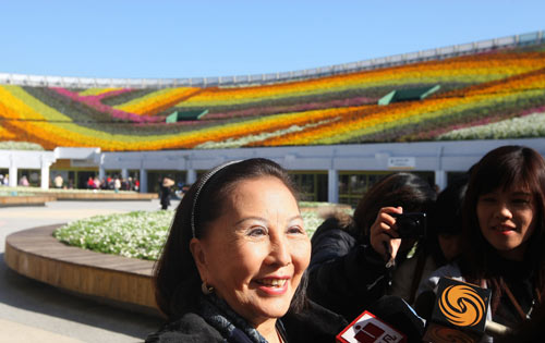 孫中山的孫女孫穗芬(左)28日參觀臺北花卉博覽會,對展區的內容表達肯定。圖片來源:“中央社”