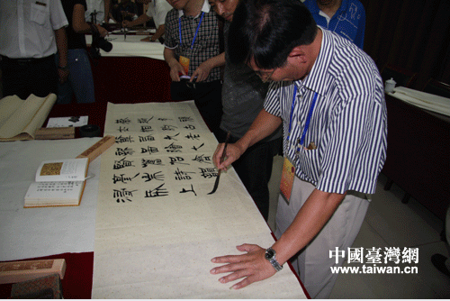 陳志聲在進行書法創作(中國臺灣網-蕪同攝)
