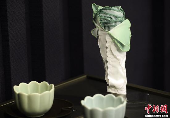 資料圖:根據臺北故宮鎮宮之寶翠玉白菜設計的“翠玉白菜傘”。中新社發 劉震 攝