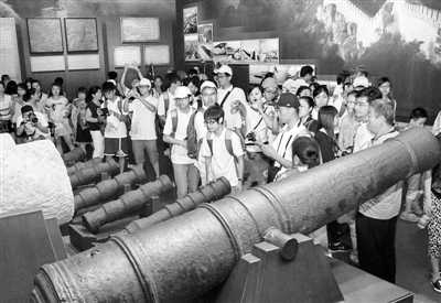 8月1日,長城文化之旅——海峽兩岸大學生文化體驗營在秦皇島市山海關正式開營。來自大陸和臺灣的30名大學生將在河北和山西境內開展長城考察活動,了解長城文化。圖為兩岸大學生在長城博物館參觀。楊寬攝(新華社發)