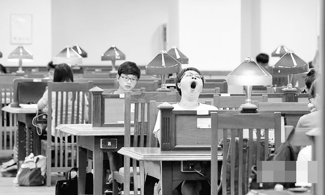 臺灣高校近年競爭力下降,一些人期待大陸學生帶來鯰魚效應。圖為臺灣大學圖書館自習室的場景。