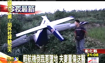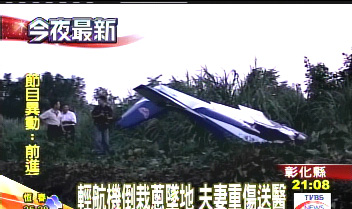 中國臺灣網9月16日消息 臺灣彰化縣芬園鄉(貓羅溪)河床,昨天下午4時43分發生一起輕航機墜落砂石場意外,飛機上駕駛褚姓夫妻,丈夫褚信坤傷勢嚴重陷入昏迷,有生命危險,妻子游鑫桂雙腿骨折,全身多處撕裂傷。