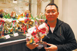 他從8歲就開始學習紙藝,一度還去參加八家將的演出,越演越有心得,且更能揣摩八家將的造型跟神韻,就以細膩的觀察力跟工法,將八家將融入到紙藝里頭。