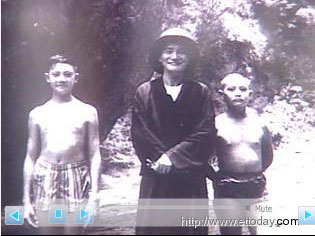 蔣介石和孫子孝武、孝勇共游角板山,照片中的蔣介石少了嚴肅神情,反而多了一份和家人在一塊時的悠閑自在。 東森新聞圖
