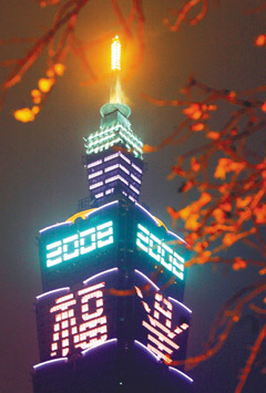 中國臺灣網2月4日消息 據臺灣《聯合報》報道,農歷年腳步已近,臺灣各地已聞到過年的氣氛,臺北101大樓秀出“春”、“!弊謽酉蚴忻癜菽,在夜晚別有一番風味。(周先)