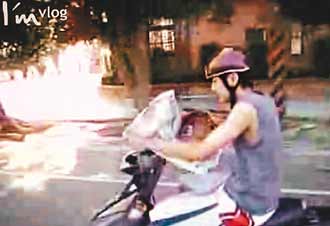 中新網(wǎng)5月19日電 在臺灣,網(wǎng)絡(luò)上最近流行著這樣一幕:兩名男子互相拍攝對方放雙手騎機(jī)車(摩托車),還邊騎邊吃泡面、喝紅茶、看報(bào)紙,該篇短爆紅,網(wǎng)友則嗆曰:有種下班時(shí)間到高峰路段吃吃看。”