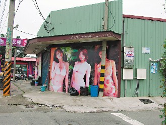 色情小吃店貼出大幅清涼女郎海報,吸引酒客上門。(圖:臺灣《聯合報》)