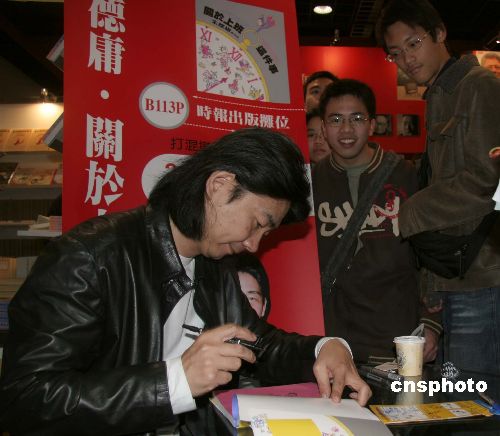 資料圖:臺(tái)灣漫畫(huà)家朱德庸在簽售。 中新社發(fā) 曾嘉 攝