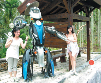 南投縣魚池鄉(xiāng)武登村民石凱倫創(chuàng)作的環(huán)保變形金鋼,吸引游客爭相留影。圖片來源:臺灣《聯(lián)合報》