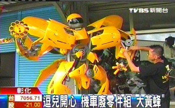 用摩托車零件組裝的“大黃蜂”。圖片來源:臺灣TVBS