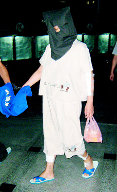 臺北縣板橋市簡姓婦人(戴頭罩)狂砍51刀殺害自己4個月大兒子的命案,檢方昨天起訴并求處無期徒刑。圖片來源:臺灣《聯合報》