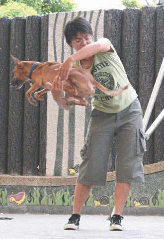 中新網9月7日電 據臺灣《聯合報》報道,臺灣動物防疫所6日在中壢市中正公園舉辦2009寵物節,舞臺上有敗犬女王走秀、寵物變裝秀,有黃色土狗上臺秀才藝,表演中槍、連續翻滾、跳圈圈,博得熱烈掌聲。