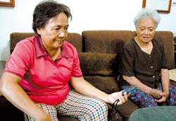 “原”味魔法阿嬤一手開辦女巫課程的翁玉華(左)與媽媽翁菊治,利用錄音呈現完整祭詞作為課程教材。 臺灣《中國時報》圖