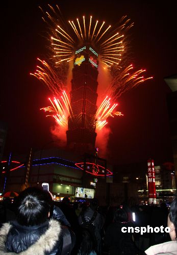 一月一日凌晨,臺北市在一0一大樓施放煙火,迎接2009年元旦的到來,吸引了大批市民觀看。 中新社發 陳立宇 攝