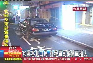 中國臺灣網(wǎng)10月20日消息 據(jù)臺灣TVBS電視臺報道,臺北市今日凌晨發(fā)生駭人的殺人案件,一名出租車司機(jī)疑似和乘客口角,乘客下車后,司機(jī)竟然開車撞向該乘客,把他夾在出租車和前車中間,致該乘客倒地后兩次在他身上輾過,才駕車逃逸。被撞乘客送醫(yī)后已經(jīng)死亡。