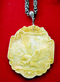 臺(tái)灣警方掃蕩四海幫海云堂,搜出一塊雕有飛鷹圖案的玉佩,據(jù)稱可以保命,如同古代“免死金牌”。來(lái)源:臺(tái)灣《聯(lián)合報(bào)》