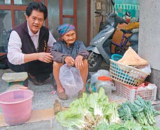 昨天上午,縣議員姜義青前往探視百歲人瑞曾三妹,有好多“老主顧”上門買菜。這些老主顧說,向“賣菜阿婆”買菜心情很高興,因為曾三妹平易親切有“媽媽的味道”。